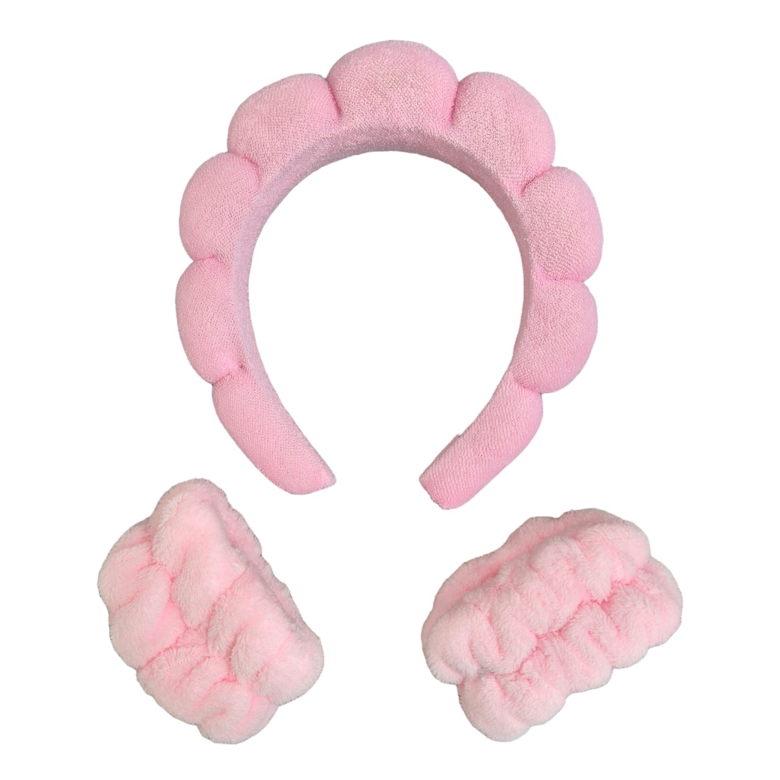 Cosmetic Headband and Anti-Drip Wristbands - Powder Pink
